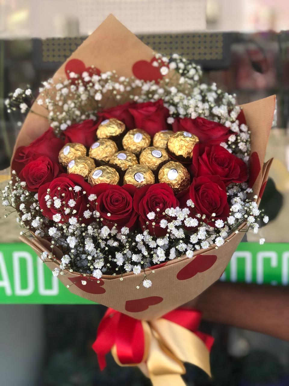 BUQUÊ DE 12ROSAS E 12CHOCOLATES