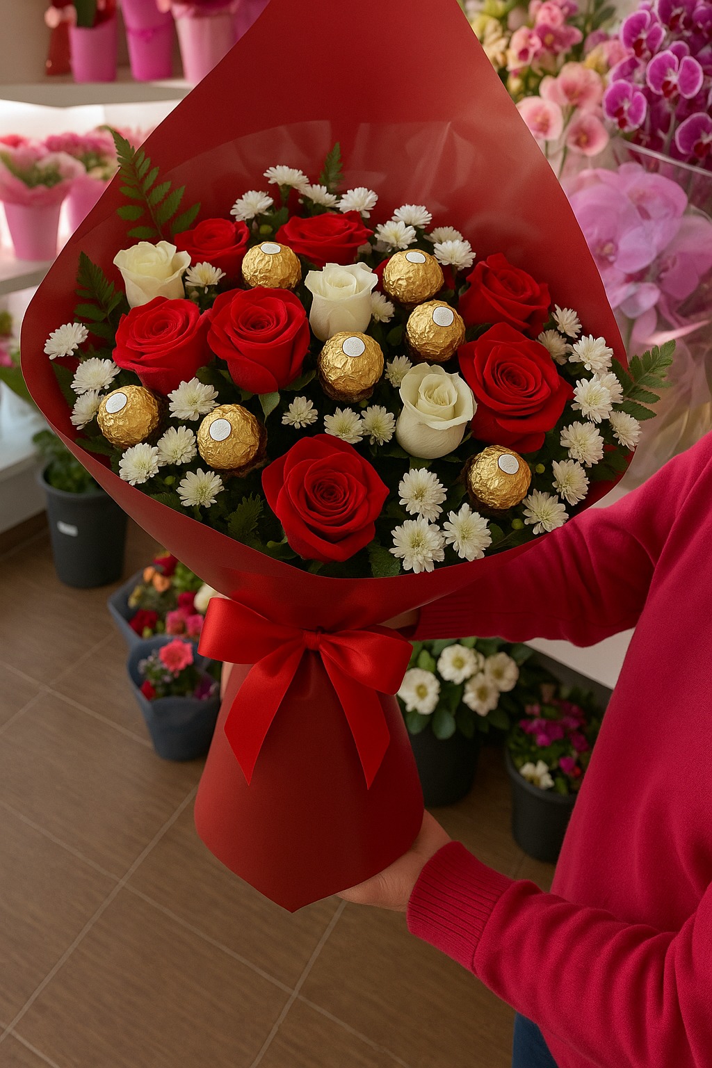 BUQUE 12 ROSAS E CHOCOLATES